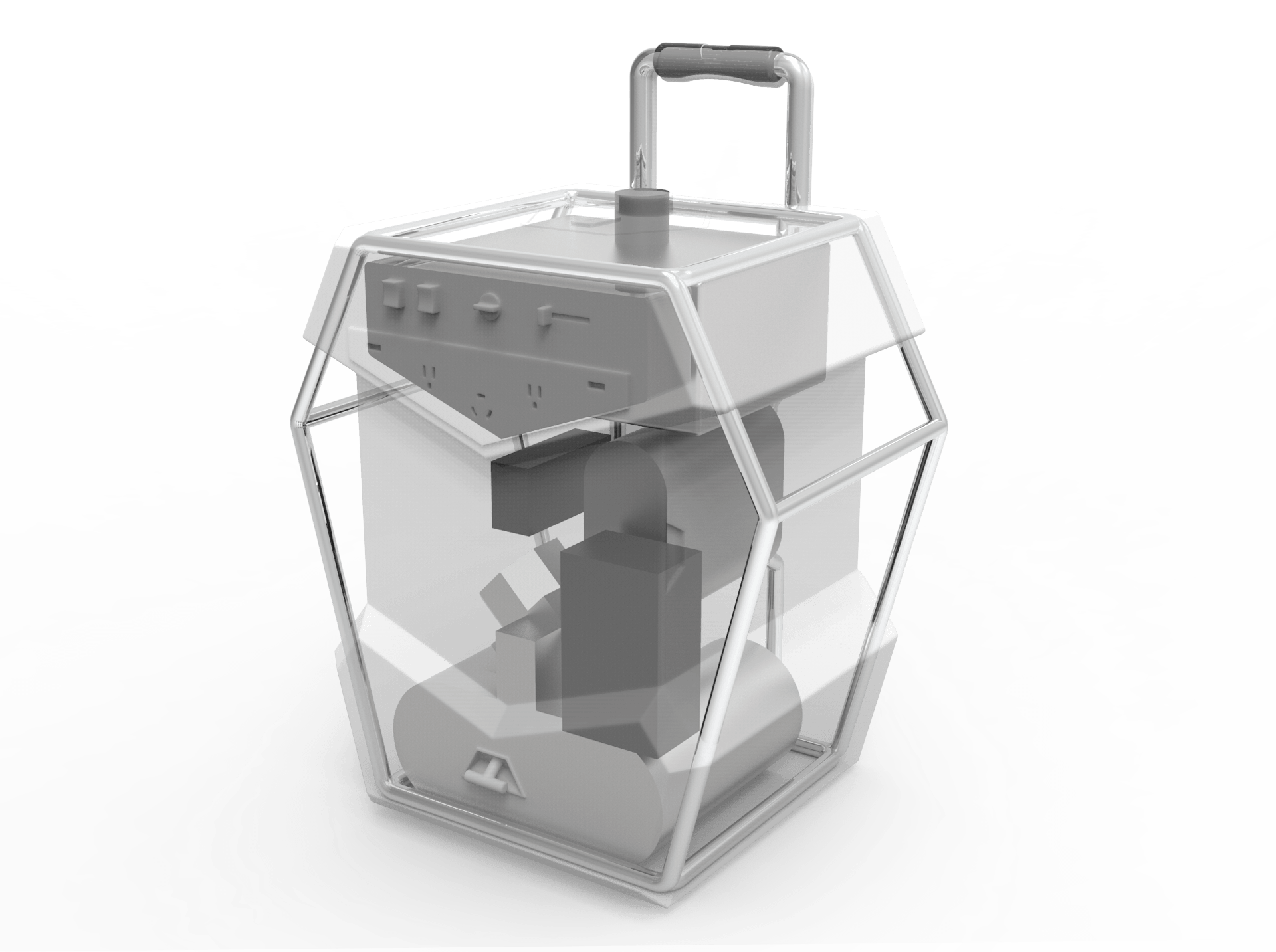 I completed a large portion of the CAD modeling in Solidworks after arranging, and worked with the rest of the group to render the models in KeyShot. I also determined the arrangement of the internal components into a more compact, vertical format.