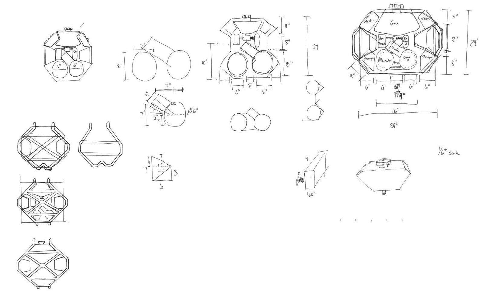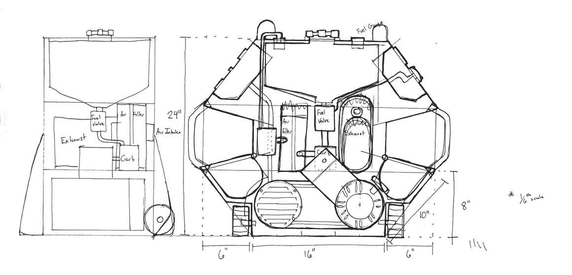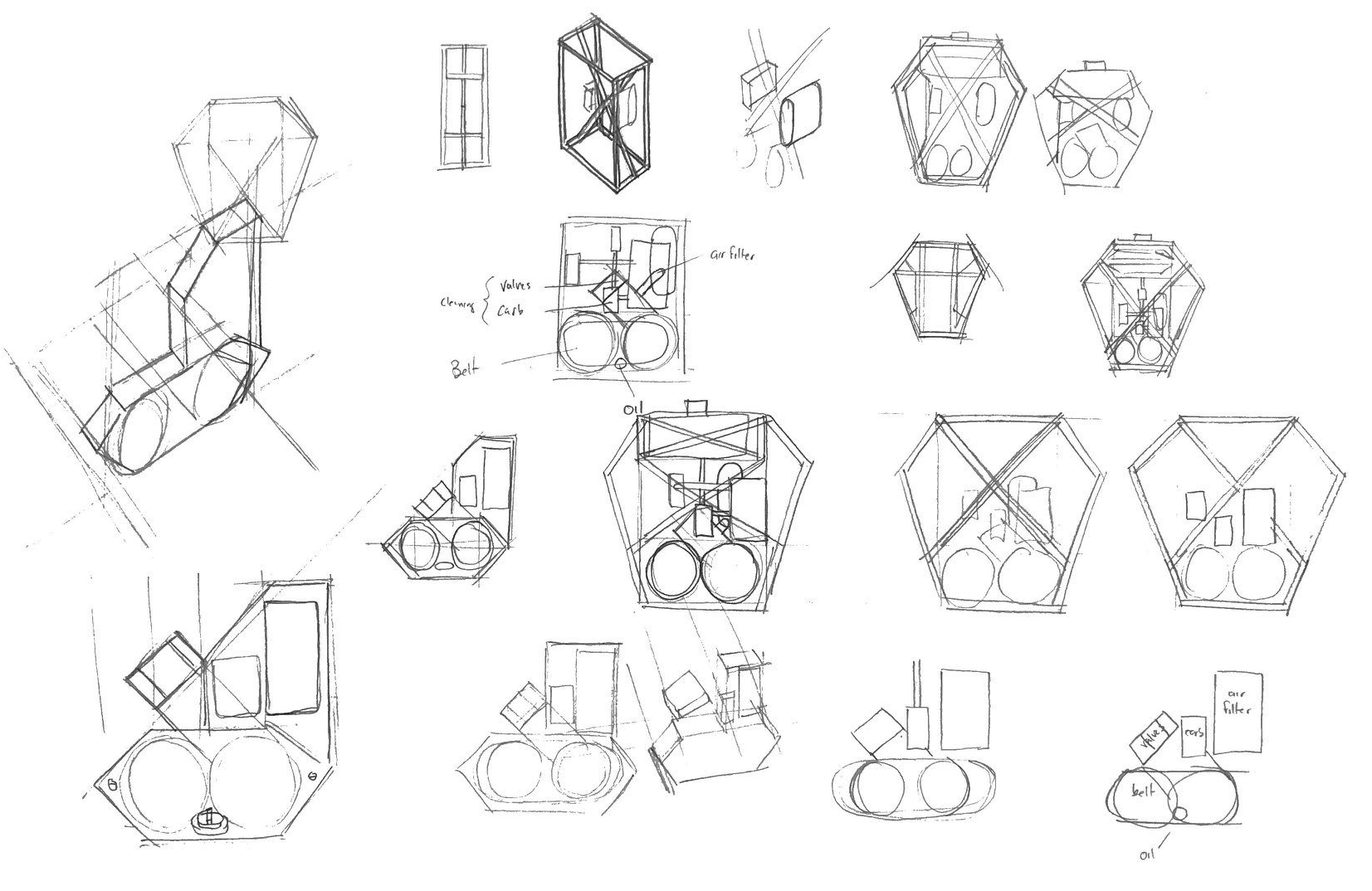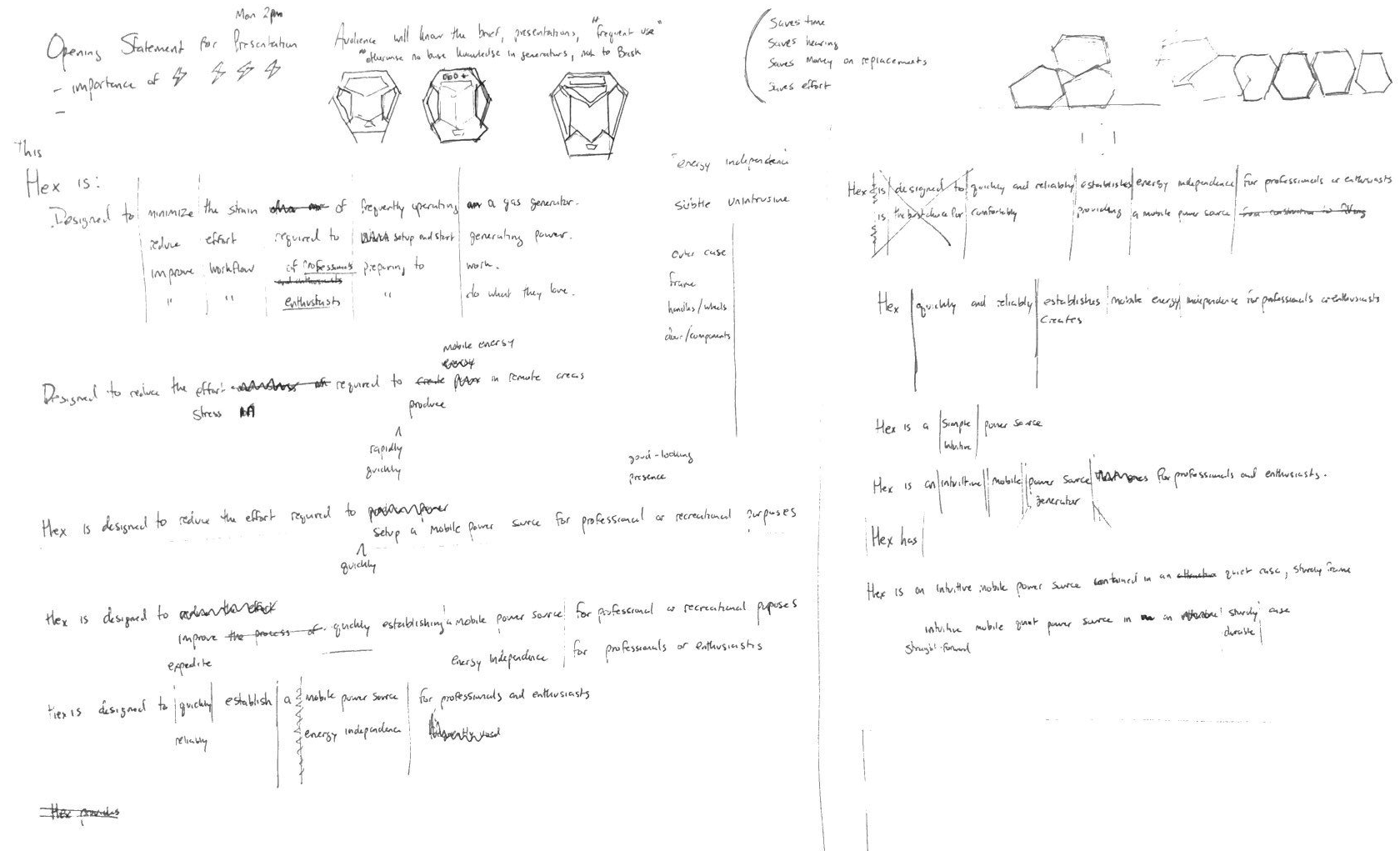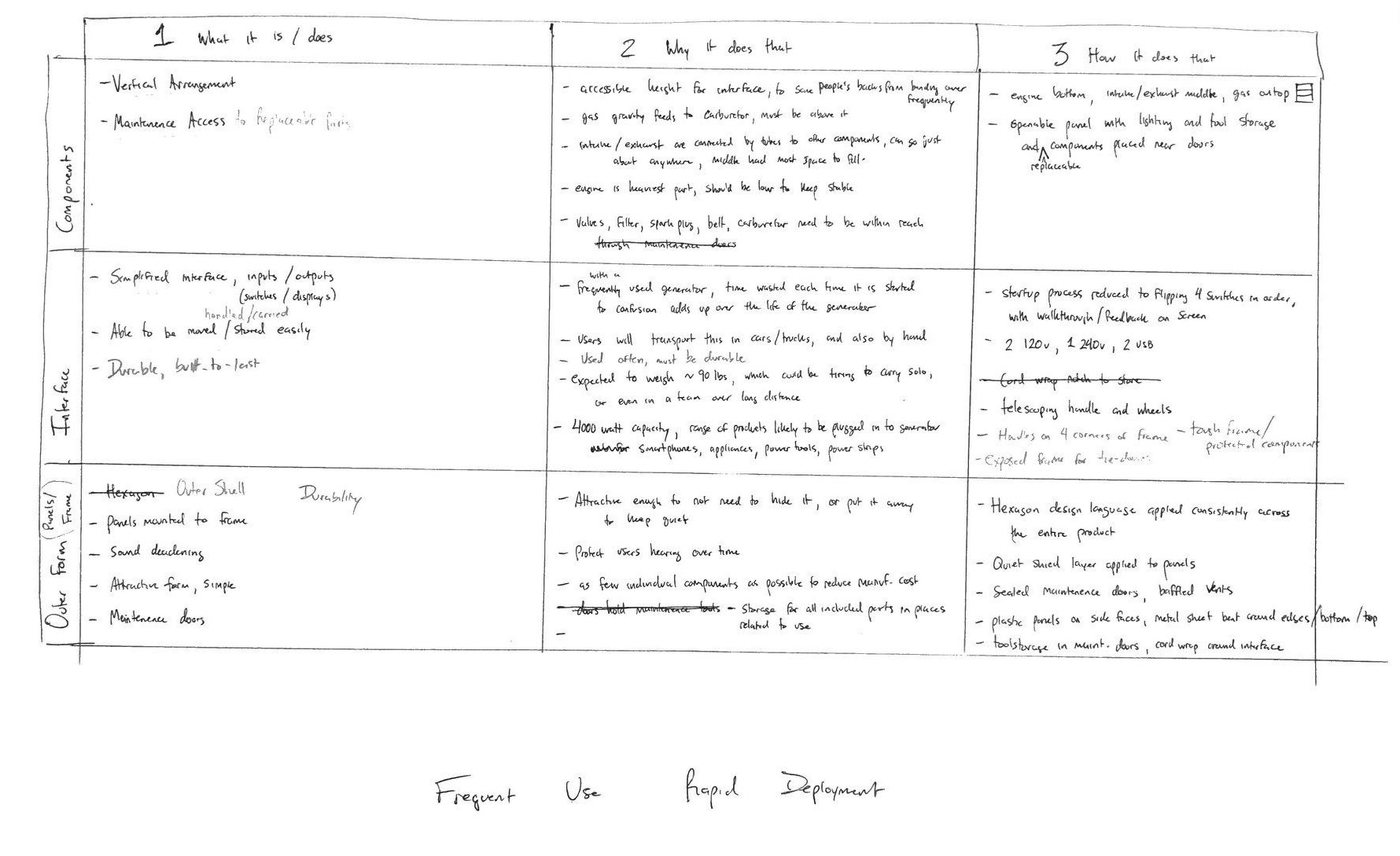 Our group went through the initial phase of brainstorming, iterative exploratory sketching and decision making on how the components would be arranged, what features, controls, and feedback the generator would provide, what materials would be used, and what the manufacturing would entail.